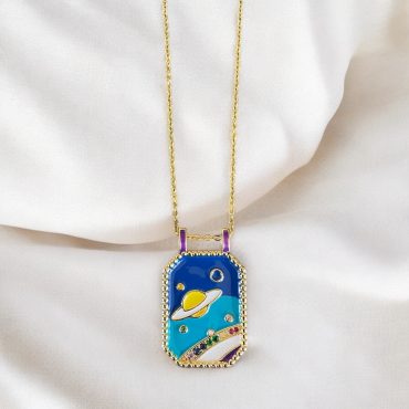 Antik çağlardan beri, Satürn, disiplinin, sınırların ve içsel gücün simgesi olarak görülür. Bu kolyenin merkezinde yer alan Satürn motifi, gezegenin etrafındaki halkalarıyla beraber, evrenin döngüsel doğasını ve her şeyin birbiriyle olan bağlantısını sembolize eder.